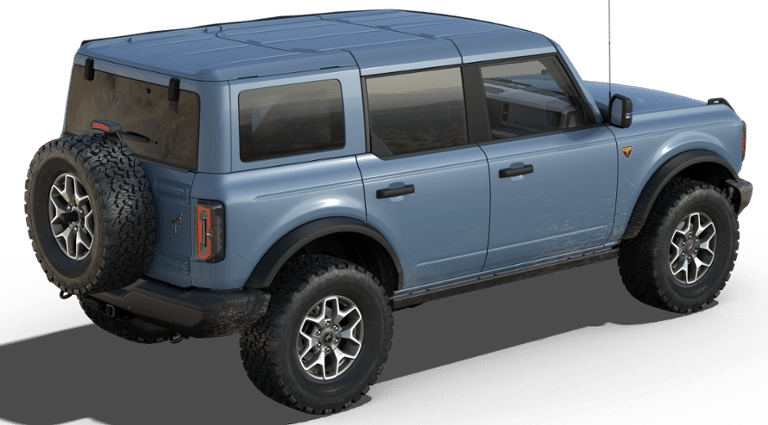2025 Azure Gray Metallic Tri-Coat 2025 Ford Bronco Badlands Badlands 4D Sport Utility 4WD 2.7L EcoBoost V6 4D Sport Utility, 2.7L EcoBoost V6, 10-Speed Automatic, 4WD, 12 LCD Productivity Touchscreen, 360-Degree Camera, 360-Degree Camera, Adaptive Cruise Control, Adaptive Cruise Control, Auto Emergency Braking, Auto LED Headlights, Backup Camera, Body Color-Painted Hard Top, Equipment Group 334A Lux Package, Evasive Steering Assist, Front Parking Sensors, Hard Top Sound Deadening Headliner, Hill Start Assist, Information on Demand Panel, Leather Seats, Pre Collision Assist w/ AEB, Push Button Start, Radio: B&O Sound System by Bang & Olufsen, Rear-Window Defroster & Washer, Remote Start, Sideview Mirrors, Trailer Tow Package (DIO), Universal Garage Door Opener. Equipment Group 334A Lux Package (360-Degree Camera, Adaptive Cruise Control, Evasive Steering Assist, Front Parking Sensors, Information on Demand Panel, Radio: B&O Sound System by Bang & Olufsen, Sideview Mirrors, Universal Garage Door Opener, and Connected Navigation), Trailer Tow Package (DIO), 4D Sport Utility, 2.7L EcoBoost V6, 10-Speed Automatic, 4WD, 12 LCD Productivity Touchscreen, 360-Degree Camera, Adaptive Cruise Control, Auto Emergency Braking, Auto LED Headlights, Backup Camera, Body Color-Painted Hard Top, Hard Top Sound Deadening Headliner, Hill Start Assist, Leather Seats, Pre Collision Assist w/ AEB, Push Button Start, Rear-Window Defroster & Washer, Remote Start, 4-Wheel Disc Brakes, 4.7 Axle Ratio, 7 Speakers, ABS brakes, Air Conditioning, Alloy wheels, AM/FM radio: SiriusXM with 360L, AM/FM Stereo, Auto High-beam Headlights, Auto-dimming Rear-View mirror, Brake assist, Compass, Delay-off headlights, Driver door bin, Driver vanity mirror, Dual front impact airbags, Dual front side impact airbags, Electronic Stability Control, Emergency communication system: 911 Assist, Exterior Parking Camera Rear, Front anti-roll bar, Front Bucket Seats, Front Center Armrest, Front fog lights, Front reading lights, Front wheel independent suspension, Fully automatic headlights, Heated door mirrors, Heated front seats, Heated steering wheel, Illuminated entry, Integrated roll-over protection, Leather Shift Knob, Leather-Trimmed/Vinyl Bucket Seats, Low tire pressure warning, Marine Grade Vinyl Heated Bucket Seats, Occupant sensing airbag, Outside temperature display, Overhead airbag, Overhead console, Panic alarm, Passenger door bin, Passenger vanity mirror, Power door mirrors, Power steering, Power windows, Radio data system, Remote keyless entry, Security system, SiriusXM w/360L, Speed control, Split folding rear seat, Steering wheel mounted audio controls, SYNC 4, Tachometer, Telescoping steering wheel, Tilt steering wheel, Traction control, Trip computer, Variably intermittent wipers, and Voltmeter. $1,000 - Exp. 12/31/2026 Retail Trade Assistance. Must trade in a vehicle to qualify $1,000 - Exp. 12/31/2026 Dealer Finance Assistance. Must finance through dealer lender to qualify.