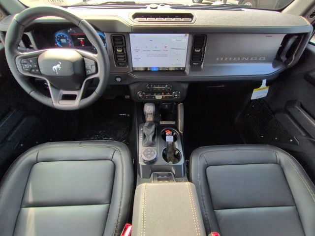 2025 Shadow Black 2025 Ford Bronco Badlands Badlands 4D Sport Utility 4WD 2.7L EcoBoost V6 Equipment Group 334A Lux Package (2-Door Intelligent Access w/Lock/Unlock, 360-Degree Camera, Adaptive Cruise Control, Ambient Footwell Lighting, Connected Navigation, Dr & Pass Illuminated Sliding Visor Vanity Mirrors, Dual Smart Charging USB Ports, Dual-Zone Electronic Automatic Temperature Control, Evasive Steering Assist, Front Parking Sensors, Front Row Heated Seats, Information on Demand Panel, Power Outlet - Back Side of Center Floor Console, Radio: B&O Sound System by Bang & Olufsen, Rear Parking Sensors, Sideview Mirrors, and Universal Garage Door Opener), 4-Wheel Disc Brakes, 4.7 Axle Ratio, 7 Speakers, ABS brakes, Air Conditioning, Alloy wheels, AM/FM radio: SiriusXM with 360L, AM/FM Stereo, Auto High-Beam Headlamps, Auto High-beam Headlights, Auto-dimming Rear-View mirror, BLIS Blind Spot Information System, Brake assist, Compass, Delay-off headlights, Driver door bin, Driver vanity mirror, Dual front impact airbags, Dual front side impact airbags, Electronic Stability Control, Emergency communication system: 911 Assist, Exterior Parking Camera Rear, Front anti-roll bar, Front Bucket Seats, Front Center Armrest, Front fog lights, Front reading lights, Front wheel independent suspension, Fully automatic headlights, Hard Top Sound Deadening Headliner, Heated door mirrors, Heated front seats, Heated steering wheel, Illuminated entry, Integrated roll-over protection, Internet access capable: FordPass Connect, Lane-Keeping System, Leather Shift Knob, Leather-Trimmed/Vinyl Bucket Seats, Low tire pressure warning, Marine Grade Vinyl Heated Bucket Seats, Occupant sensing airbag, Outside temperature display, Overhead airbag, Overhead console, Panic alarm, Passenger door bin, Passenger vanity mirror, Power door mirrors, Power steering, Power windows, Pre-Collision Assist w/Automatic Emergency Braking, Radio data system, Rear-View Camera, Rear-Window Defroster & Washer, Remote keyless entry, Security system, Shadow Black Painted Hard Top, SiriusXM w/360L, Speed control, Split folding rear seat, Steering wheel mounted audio controls, SYNC 4, Tachometer, Telescoping steering wheel, Tilt steering wheel, Traction control, Trip computer, Variably intermittent wipers, Voltmeter, and Wheels: 17 Carbonized Gray-Painted Aluminum. $1,000 - Exp. 12/31/2026 Retail Trade Assistance. Must trade in a vehicle to qualify $1,000 - Exp. 12/31/2026 Dealer Finance Assistance. Must finance through dealer lender to qualify.