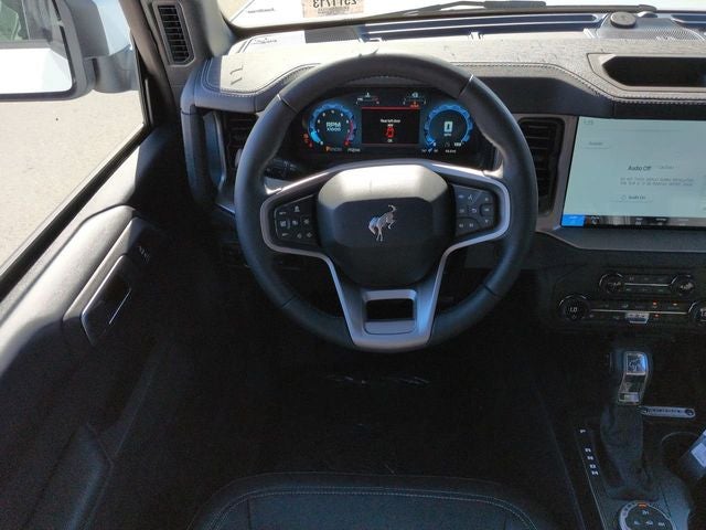 2025 Oxford White 2025 Ford Bronco Outer Banks Outer Banks 4D Sport Utility 4WD 2.7L EcoBoost V6 4D Sport Utility, 2.7L EcoBoost V6, 10-Speed Automatic, 4WD, 12 LCD Productivity Touchscreen, 360-Degree Camera, 360-Degree Camera, Adaptive Cruise Control, Adaptive Cruise Control, Auto LED Headlights, Backup Camera, Carbonized Gray Molded-In-Color Hard Top, Equipment Group 314A Lux Package, Evasive Steering Assist, Front Parking Sensors, Hard Top Sound Deadening Headliner, Hill Start Assist, Information on Demand Panel, Navigation system: Connected Navigation, Radio: B&O Sound System by Bang & Olufsen, Rear-Window Defroster & Washer, Sideview Mirrors, Trailer Tow Package (DIO), Universal Garage Door Opener. Equipment Group 314A Lux Package (360-Degree Camera, Adaptive Cruise Control, Evasive Steering Assist, Front Parking Sensors, Information on Demand Panel, Radio: B&O Sound System by Bang & Olufsen, Sideview Mirrors, and Universal Garage Door Opener), Trailer Tow Package (DIO), 4D Sport Utility, 2.7L EcoBoost V6, 10-Speed Automatic, 4WD, 12 LCD Productivity Touchscreen, 360-Degree Camera, Adaptive Cruise Control, Auto LED Headlights, Backup Camera, Carbonized Gray Molded-In-Color Hard Top, Hard Top Sound Deadening Headliner, Hill Start Assist, Navigation system: Connected Navigation, Rear-Window Defroster & Washer, 18 Bright Machined Aluminum Wheels, 3.73 Axle Ratio, 4-Wheel Disc Brakes, 7 Speakers, ABS brakes, Air Conditioning, Alloy wheels, AM/FM radio: SiriusXM with 360L, AM/FM Stereo, Auto High-beam Headlights, Auto-dimming Rear-View mirror, Automatic temperature control, Brake assist, Compass, Connected Navigation, Delay-off headlights, Driver door bin, Driver vanity mirror, Dual front impact airbags, Dual front side impact airbags, Electronic Stability Control, Emergency communication system: 911 Assist, Exterior Parking Camera Rear, Front anti-roll bar, Front Bucket Seats, Front Center Armrest, Front dual zone A/C, Front fog lights, Front reading lights, Front wheel independent suspension, Fully automatic headlights, Heated door mirrors, Heated front seats, Heated Leather-Trimmed/Vinyl Bucket Seats, Heated steering wheel, Illuminated entry, Integrated roll-over protection, Leather Shift Knob, Low tire pressure warning, Occupant sensing airbag, Outside temperature display, Overhead airbag, Overhead console, Panic alarm, Passenger door bin, Passenger vanity mirror, Power door mirrors, Power driver seat, Power passenger seat, Power steering, Power windows, Radio data system, Rear seat center armrest, Remote keyless entry, Security system, SiriusXM w/360L, Speed control, Split folding rear seat, Steering wheel mounted audio controls, SYNC 4, Tachometer, Telescoping steering wheel, Tilt steering wheel, Traction control, Trip computer, Variably intermittent wipers, and Voltmeter. $1,000 - Exp. 12/31/2026 Retail Trade Assistance. Must trade in a vehicle to qualify $1,000 - Exp. 12/31/2026 Dealer Finance Assistance. Must finance through dealer lender to qualify.
