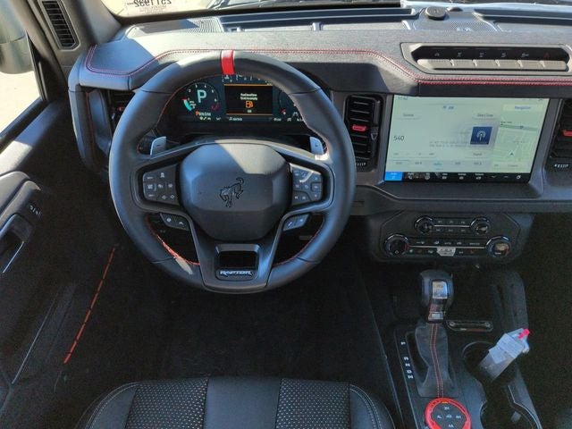 2025 Desert Sand 2025 Ford Bronco Raptor Raptor 4D Sport Utility 4WD 3.0L EcoBoost V6 12 Speakers, 4-Wheel Disc Brakes, ABS brakes, Air Conditioning, Alloy wheels, AM/FM radio: SiriusXM with 360L, Auto High-beam Headlights, Auto-dimming Rear-View mirror, Automatic temperature control, Brake assist, Compass, Connected Navigation, Convertible HardTop, Convertible roof lining, Delay-off headlights, Driver door bin, Driver vanity mirror, Dual front impact airbags, Dual front side impact airbags, Electronic Stability Control, Emergency communication system: 911 Assist, Exterior Parking Camera Rear, Front anti-roll bar, Front Bucket Seats, Front Center Armrest, Front dual zone A/C, Front fog lights, Front reading lights, Front wheel independent suspension, Fully automatic headlights, Garage door transmitter, Glass rear window, Hard Top Sound Deadening Headliner, Heated door mirrors, Heated front seats, Heated steering wheel, Illuminated entry, Integrated roll-over protection, Internet access capable: FordPass Connect, Leather Shift Knob, Leather-Trimmed/Vinyl Bucket Seats, Low tire pressure warning, Marine Grade Vinyl Bucket Seats, Navigation system: Connected Navigation, Occupant sensing airbag, Outside temperature display, Overhead airbag, Overhead console, Panic alarm, Passenger door bin, Passenger vanity mirror, Power door mirrors, Power steering, Power windows, Radio data system, Radio: B&O Sound System by Bang & Olufsen, Rear anti-roll bar, Rear seat center armrest, Rear window defroster, Rear window wiper, Rear-Window Defroster & Washer, Remote keyless entry, Security system, Shadow Black Painted Hard Top, SiriusXM w/360L, Speed control, Split folding rear seat, Steering wheel mounted audio controls, SYNC 4, Tachometer, Telescoping steering wheel, Tilt steering wheel, Traction control, Trip computer, Turn signal indicator mirrors, Variably intermittent wipers, Voltmeter, and Wheels: 17 Black High Gloss-Painted Aluminum. Price includes: $1,000 - Exp. 12/31/2026 Retail Trade Assistance. Must trade in a vehicle to qualify $1,000 - Exp. 12/31/2026 Dealer Finance Assistance. Must finance through dealer lender to qualify.