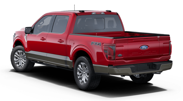 2025 Rapid Red Metallic Tinted Clearcoat 2025 Ford F-150 King Ranch King Ranch 4D SuperCrew 4WD 3.5L V6 EcoBoost 4D SuperCrew, 3.5L V6 EcoBoost, 10-Speed Automatic, 4WD, 12 LCD Productivity Touchscreen, 360-Degree Camera, 4x4 FX4 Off-Road Bodyside Decal, 5G WiFi Hotspot Telematics, Adaptive Cruise Control, Auto Emergency Braking, Auto LED Headlights, Backup Camera, Blind Spot Monitoring, BLIS w/ Cross Traffic Alert, Electronic Locking w/3.55 Axle Ratio, Equipment Group 601A High, FX4 Off-Road Package, Heads-Up Display, Hill Descent Control, King Ranch Package, Lane Departure Warning, Leather Seats, Monotube Rear Shocks, Navigation system: Connected Navigation, Off-Road Tuned Front Shock Absorbers, Radio: B&O Unleashed Sound System by Bang & Olufsen, Rain sensing wipers, Rock Crawl Mode, Spray-In Bedliner, SYNC 4 w/Enhanced Voice Recognition. Equipment Group 601A High, FX4 Off-Road Package (4x4 FX4 Off-Road Bodyside Decal, Hill Descent Control, Monotube Rear Shocks, Off-Road Tuned Front Shock Absorbers, and Rock Crawl Mode), 4D SuperCrew, 3.5L V6 EcoBoost, 10-Speed Automatic, 4WD, 12 LCD Productivity Touchscreen, 360-Degree Camera, 5G WiFi Hotspot Telematics, Adaptive Cruise Control, Auto Emergency Braking, Auto LED Headlights, Backup Camera, Blind Spot Monitoring, BLIS w/ Cross Traffic Alert, Electronic Locking w/3.55 Axle Ratio, Heads-Up Display, King Ranch Package, Lane Departure Warning, Leather Seats, Navigation system: Connected Navigation, Radio: B&O Unleashed Sound System by Bang & Olufsen, Rain sensing wipers, Spray-In Bedliner, SYNC 4 w/Enhanced Voice Recognition, 14 Speakers, 4-Wheel Disc Brakes, ABS brakes, Adjustable pedals, Air Conditioning, Alloy wheels, AM/FM radio: SiriusXM with 360L, Auto High-beam Headlights, Auto tilt-away steering wheel, Auto-dimming door mirrors, Auto-dimming Rear-View mirror, Automatic temperature control, Bluetooth® w/ Audio Streaming, Brake assist, Chrome wheels, Compass, Delay-off headlights, Driver door bin, Driver vanity mirror, Dual front impact airbags, Dual front side impact airbags, Electronic Stability Control, Emergency communication system: SYNC 4 911 Assist, Front anti-roll bar, Front Bucket Seats, Front Center Armrest, Front dual zone A/C, Front fog lights, Front License Plate Bracket, Front reading lights, Front wheel independent suspension, Fully automatic headlights, Garage door transmitter, Genuine wood dashboard insert, Heated door mirrors, Heated front seats, Heated rear seats, Heated steering wheel, Illuminated entry, Internet access capable: FordPass Connect 5G, King Ranch Multicontour Leather Bucket Seats, Leather steering wheel, Low tire pressure warning, Memory seat, Occupant sensing airbag, Outside temperature display, Overhead airbag, Overhead console, Panic alarm, Passenger door bin, Passenger vanity mirror, Pedal memory, Power door mirrors, Power driver seat, Power moonroof, Power passenger seat, Power steering, Power windows, Radio data system, Rear reading lights, Rear seat center armrest, Rear step bumper, Rear window defroster, Remote keyless entry, Security system, Speed control, Split folding rear seat, Steering wheel memory, Steering wheel mounted audio controls, Tachometer, Telescoping steering wheel, Tilt steering wheel, Traction control, Trip computer, Turn signal indicator mirrors, Ventilated front seats, Voltmeter, and Wheels: 20 Chrome-Like PVD. Price includes: $1,000 - Exp. 12/31/2026 Retail Trade Assistance. Must trade in a vehicle to qualify $1,000 - Exp. 12/31/2026 Dealer Finance Assistance. Must finance through dealer lender to qualify.