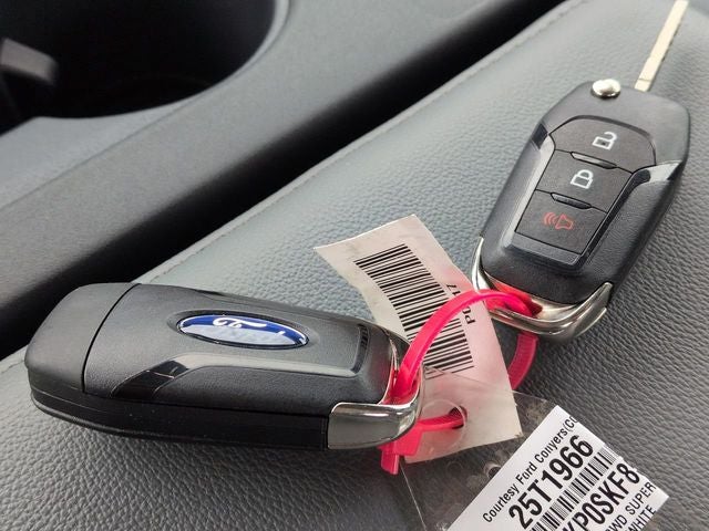2025 Oxford White 2025 Ford F-150 XL XL Super Cab RWD 2.7L V6 EcoBoost Equipment Group 101A Standard, GVWR: 6,365 lbs Payload Package, 3.55 Axle Ratio, 4-Wheel Disc Brakes, 6 Speakers, ABS brakes, Air Conditioning, AM/FM radio: SiriusXM with 360L, Auto High-beam Headlights, Brake assist, Cloth 40/20/40 Front Seat, Compass, Delay-off headlights, Driver door bin, Dual front impact airbags, Dual front side impact airbags, Electronic Stability Control, Emergency communication system: SYNC 4 911 Assist, Front anti-roll bar, Front Center Armrest, Front reading lights, Front wheel independent suspension, Fully automatic headlights, Heated door mirrors, Illuminated entry, Internet access capable: FordPass Connect 5G, Low tire pressure warning, Occupant sensing airbag, Outside temperature display, Overhead airbag, Overhead console, Panic alarm, Passenger door bin, Passenger vanity mirror, Power door mirrors, Power steering, Power windows, Radio data system, Radio: AM/FM Stereo w/SiriusXM 360L, Rear Parking Sensors, Rear step bumper, Remote keyless entry, Security system, Speed control, Split folding rear seat, Steering wheel mounted audio controls, SYNC 4 w/Enhanced Voice Recognition, Tachometer, Telescoping steering wheel, Tilt steering wheel, Tough Bed Spray-In Bedliner, Traction control, Trip computer, Variably intermittent wipers, Vinyl 40/20/40 Front Seat, Voltmeter, and Wheels: 17 Silver Steel. Price includes: $1,000 - Exp. 12/31/2026 Retail Trade Assistance. Must trade in a vehicle to qualify $1,000 - Exp. 12/31/2026 Dealer Finance Assistance. Must finance through dealer lender to qualify.