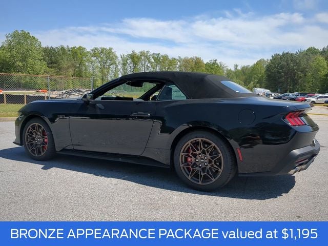 2025 Shadow Black 2025 Ford Mustang GT Premium Convertible GT Premium 2D Convertible RWD 5.0L V8 Ti-VCT 12.4 LCD Digital Driver Cluster, 13.2 LCD Centerstack Touchscreen, 4G WiFi Hotspot Telematics, Adaptive Suspension, Push Button Start, 2D Convertible, 5.0L V8 Ti-VCT, 6-Speed Manual, 3.73 TORSEN Limited-Slip Rear Axle Ratio, 9 Speakers, Active Anti-Theft System, AM/FM radio: SiriusXM with 360L, AM/FM Stereo, Automatic temperature control, Black Painted Strut-Tower Brace, Brembo Brake System w/Performance Linings, Bronze Appearance Package, Connected Navigation, Driver Seat & Mirrors Memory, Ebony Black Grille, Electric Hand-Operated Parking Brake (Drift Brake), Equipment Group 401A High Package, Ford Co-Pilot360 Assist+, Front dual zone A/C, Front Towing Hooks, GT Performance Package, HD Radio, Heated door mirrors, Heavy-Duty Front Springs, Illuminated Door-Sill Scuff Plates, Integrated Turn Signals, Leather-Trimmed Bucket Seats w/Color Accents, Locking Center Console, MagneRide Damping System, Power door mirrors, Pre-Collision Assist w/Automatic Emergency Braking, Radio data system, Red Painted Brake Calipers w/White Logo, Security Package, Sinister Bronze GT 5.0 & Pony Badges, SiriusXM w/360L, Spoiler, SYNC 4, Turn signal indicator mirrors, Unique Chassis Tuning, Unique Stability Control, Upsized Rear Sway Bars, Wheel Locking Kit, Wheels: 19 x 8.5 Shadow Silver-Painted Aluminum. Bronze Appearance Package (Sinister Bronze GT 5.0 & Pony Badges), Equipment Group 401A High Package (Driver Seat & Mirrors Memory, Illuminated Door-Sill Scuff Plates, Integrated Turn Signals, and Leather-Trimmed Bucket Seats w/Color Accents), Ford Co-Pilot360 Assist+ (Connected Navigation and Pre-Collision Assist w/Automatic Emergency Braking), GT Performance Package (Black Painted Strut-Tower Brace, Ebony Black Grille, Electric Hand-Operated Parking Brake (Drift Brake), Front Towing Hooks, Heavy-Duty Front Springs, Unique Chassis Tuning, Unique Stability Control, Upsized Rear Sway Bars, and Brembo Brake System), Security Package (Active Anti-Theft System, Locking Center Console, and Wheel Locking Kit), 2D Convertible, 5.0L V8 Ti-VCT, 6-Speed Manual, 3.73 TORSEN Limited-Slip Rear Axle Ratio, 9 Speakers, AM/FM radio: SiriusXM with 360L, AM/FM Stereo, Automatic temperature control, Brembo Brake System w/Performance Linings, Front dual zone A/C, HD Radio, Heated door mirrors, MagneRide Damping System, Power door mirrors, Radio data system, Red Painted Brake Calipers w/White Logo, SiriusXM w/360L, Spoiler, SYNC 4, Turn signal indicator mirrors, Wheels: 19 x 8.5 Shadow Silver-Painted Aluminum, 4-Wheel Disc Brakes, ABS brakes, Active Valve Performance Exhaust, Air Conditioning, Alloy wheels, Auto High-beam Headlights, Auto-dimming Rear-View mirror, Brake assist, Bumpers: body-color, Climate Controlled Heated/Cooled Front Seats, Compass, Convertible roof lining, Delay-off headlights, Driver door bin, Driver vanity mirror, Dual front impact airbags, Dual front side impact airbags, Electronic Stability Control, Emergency communication system: 911 Assist, Exterior Parking Camera Rear, Four wheel independent suspension, Front anti-roll bar, Front Bucket Seats, Front Center Armrest, Front reading lights, Fully automatic headlights, Garage door transmitter, Glass rear window, Heated front seats, Heated steering wheel, Illuminated entry, Knee airbag, Leather Shift Knob, Leather steering wheel, Leather-Trimmed Bucket Seats, Low tire pressure warning, Occupant sensing airbag, Outside temperature display, Overhead console, Panic alarm, Passenger door bin, Passenger vanity mirror, Power convertible roof, Power driver seat, Power passenger $1,000 - Exp. 12/31/2026 Retail Trade Assistance. Must trade in a vehicle to qualify $1,000 - Exp. 12/31/2026 Dealer Finance Assistance. Must finance through dealer