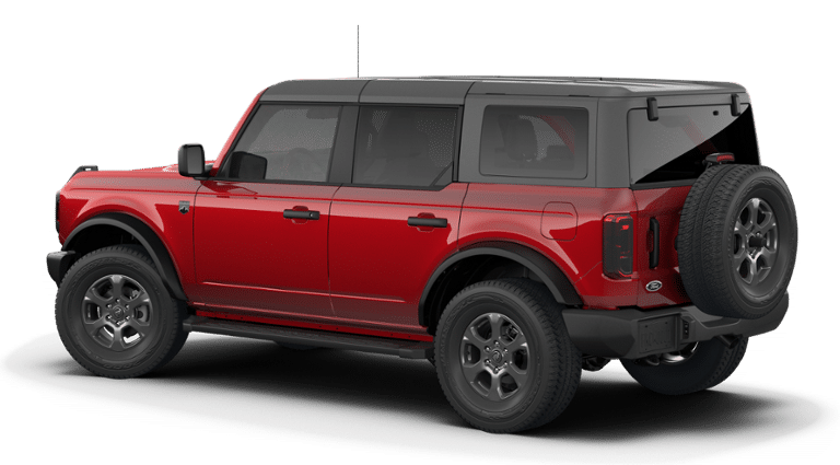 2026 Ruby Red Metallic Tinted Clearcoat 2026 Ford Bronco Big Bend Big Bend 4D Sport Utility 4WD 2.3L EcoBoost I-4 Ford Connectivity Package (1-Year Included), 4-Wheel Disc Brakes, 4.46 Axle Ratio, 7 Speakers, ABS brakes, Air Conditioning, Alloy wheels, AM/FM radio: SiriusXM with 360L, AM/FM Stereo, Auto High-beam Headlights, Brake assist, Carbonized Gray Molded-in-Color Hard Top, Cloth Bucket Seats, Compass, Delay-off headlights, Driver door bin, Driver vanity mirror, Dual front impact airbags, Dual front side impact airbags, Electronic Stability Control, Emergency communication system: 911 Assist, Exterior Parking Camera Rear, Front and Rear Floor Liners, Front anti-roll bar, Front Bucket Seats, Front Center Armrest, Front License Plate Bracket, Front reading lights, Front wheel independent suspension, Fully automatic headlights, Hard Top Sound Deadening Headliner, Heated door mirrors, Illuminated entry, Integrated roll-over protection, Low tire pressure warning, Occupant sensing airbag, Outside temperature display, Overhead airbag, Overhead console, Panic alarm, Passenger door bin, Passenger vanity mirror, Power door mirrors, Power steering, Power windows, Radio data system, Rear-Window Defroster and Washer, Remote keyless entry, Security system, Side Step, SiriusXM with 360L, Speed control, Split folding rear seat, Steering wheel mounted audio controls, SYNC 4, Tachometer, Telescoping steering wheel, Tilt steering wheel, Traction control, Trip computer, Variably intermittent wipers, and Wheels: 17 Carbonized Gray-Painted Aluminum.