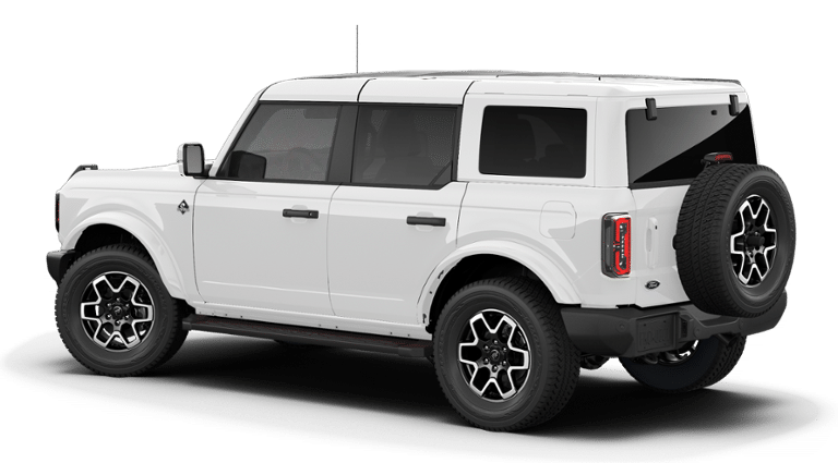 2026 Oxford White 2026 Ford Bronco Outer Banks Outer Banks 4D Sport Utility 4WD 2.3L EcoBoost I-4 Ford Connectivity Package (1-Year Included), 18 Bright Machined Aluminum Wheels, 3.73 Axle Ratio, 4-Wheel Disc Brakes, 7 Speakers, ABS brakes, Air Conditioning, Alloy wheels, AM/FM radio: SiriusXM with 360L, AM/FM Stereo, Auto High-beam Headlights, Auto-dimming Rear-View mirror, Automatic temperature control, Body Color Painted Hard Top, Brake assist, Compass, Connected Navigation, Delay-off headlights, Driver door bin, Driver vanity mirror, Dual front impact airbags, Dual front side impact airbags, Electronic Stability Control, Emergency communication system: 911 Assist, Exterior Parking Camera Rear, Front anti-roll bar, Front Bucket Seats, Front Center Armrest, Front dual zone A/C, Front fog lights, Front reading lights, Front wheel independent suspension, Fully automatic headlights, Hard Top Sound Deadening Headliner, Heated door mirrors, Heated front seats, Heated Leather-Trimmed/Vinyl Bucket Seats, Heated steering wheel, Illuminated entry, Integrated roll-over protection, Leather Shift Knob, Low tire pressure warning, Navigation system: Connected Navigation, Occupant sensing airbag, Outside temperature display, Overhead airbag, Overhead console, Panic alarm, Passenger door bin, Passenger vanity mirror, Power door mirrors, Power driver seat, Power passenger seat, Power steering, Power windows, Radio data system, Rear seat center armrest, Rear-Window Defroster and Washer, Remote keyless entry, Security system, SiriusXM with 360L, Speed control, Split folding rear seat, Steering wheel mounted audio controls, SYNC 4, Tachometer, Telescoping steering wheel, Tilt steering wheel, Traction control, Trip computer, Variably intermittent wipers, and Voltmeter.