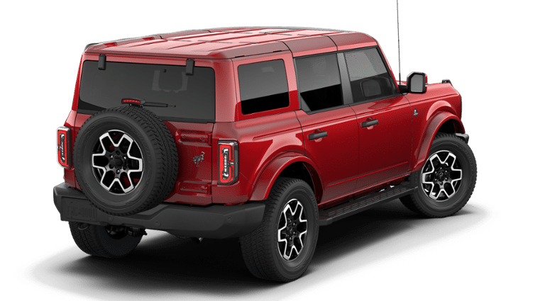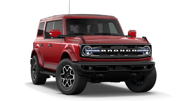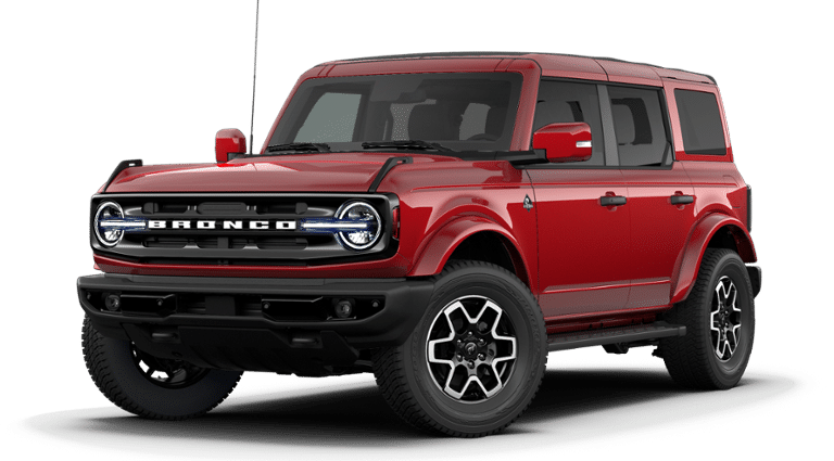 2026 Ruby Red Metallic Tinted Clearcoat 2026 Ford Bronco Outer Banks Outer Banks 4D Sport Utility 4WD 2.7L EcoBoost V6 Ford Connectivity Package (1-Year Included), 18 Bright Machined Aluminum Wheels, 3.73 Axle Ratio, 4-Wheel Disc Brakes, 7 Speakers, ABS brakes, Air Conditioning, Alloy wheels, AM/FM radio: SiriusXM with 360L, AM/FM Stereo, Auto High-beam Headlights, Auto-dimming Rear-View mirror, Automatic temperature control, Brake assist, Compass, Connected Navigation, Delay-off headlights, Driver door bin, Driver vanity mirror, Dual front impact airbags, Dual front side impact airbags, Electronic Stability Control, Emergency communication system: 911 Assist, Exterior Parking Camera Rear, Front anti-roll bar, Front Bucket Seats, Front Center Armrest, Front dual zone A/C, Front fog lights, Front reading lights, Front wheel independent suspension, Fully automatic headlights, Hard Top Sound Deadening Headliner, Heated door mirrors, Heated front seats, Heated Leather-Trimmed/Vinyl Bucket Seats, Heated steering wheel, Illuminated entry, Integrated roll-over protection, Leather Shift Knob, Low tire pressure warning, Navigation system: Connected Navigation, Occupant sensing airbag, Outside temperature display, Overhead airbag, Overhead console, Painted Hard Top, Panic alarm, Passenger door bin, Passenger vanity mirror, Power door mirrors, Power driver seat, Power passenger seat, Power steering, Power windows, Radio data system, Rear seat center armrest, Rear-Window Defroster and Washer, Remote keyless entry, Security system, SiriusXM with 360L, Speed control, Split folding rear seat, Steering wheel mounted audio controls, SYNC 4, Tachometer, Telescoping steering wheel, Tilt steering wheel, Traction control, Trip computer, Variably intermittent wipers, and Voltmeter. Price includes: $1,000 - Exp. 12/31/2026 Retail Trade Assistance. Must trade in a vehicle to qualify $1,000 - Exp. 12/31/2026 Dealer Finance Assistance. Must finance through dealer lender to qualify.