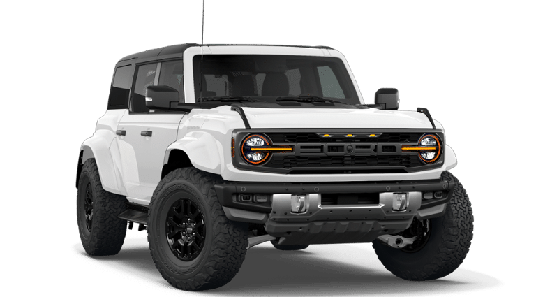 2026 Oxford White 2026 Ford Bronco Raptor Raptor 4D Sport Utility 4WD 3.0L EcoBoost V6 Ford Connectivity Package (1-Year Included), 12 Speakers, 4-Wheel Disc Brakes, ABS brakes, Air Conditioning, Alloy wheels, AM/FM radio: SiriusXM with 360L, Auto High-beam Headlights, Auto-dimming Rear-View mirror, Automatic temperature control, Brake assist, Compass, Connected Navigation, Convertible HardTop, Convertible roof lining, Delay-off headlights, Driver door bin, Driver vanity mirror, Dual front impact airbags, Dual front side impact airbags, Electronic Stability Control, Emergency communication system: 911 Assist, Exterior Parking Camera Rear, Front anti-roll bar, Front Bucket Seats, Front Center Armrest, Front dual zone A/C, Front fog lights, Front License Plate Bracket, Front reading lights, Front wheel independent suspension, Fully automatic headlights, Glass rear window, Heated door mirrors, Heated front seats, Heated steering wheel, Illuminated entry, Integrated roll-over protection, Leather Shift Knob, Low tire pressure warning, Marine Grade Vinyl Bucket Seats, Navigation system: Connected Navigation, Occupant sensing airbag, Outside temperature display, Overhead airbag, Overhead console, Panic alarm, Passenger door bin, Passenger vanity mirror, Power door mirrors, Power steering, Power windows, Radio data system, Rear anti-roll bar, Rear seat center armrest, Rear window defroster, Rear window wiper, Remote keyless entry, Security system, SiriusXM with 360L, Speed control, Split folding rear seat, Steering wheel mounted audio controls, SYNC 4, Tachometer, Telescoping steering wheel, Tilt steering wheel, Traction control, Trip computer, Turn signal indicator mirrors, Variably intermittent wipers, Voltmeter, and Wheels: 17 Black High Gloss-Painted Aluminum. Price includes: $1,000 - Exp. 12/31/2026 Retail Trade Assistance. Must trade in a vehicle to qualify $1,000 - Exp. 12/31/2026 Dealer Finance Assistance. Must finance through dealer lender to qualify.