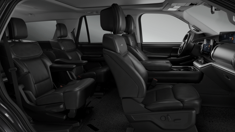 2026 Dark Matter Gray Metallic 2026 Ford Expedition Platinum Platinum 4D Sport Utility 4WD 3.5L V6 EcoBoost High Output 4WD. Driver's Package (Radio: B&O Play Unleashed and SiriusXM with 360L), Ford Connectivity Package (1-Year Included), Stealth Appearance Package (Black Belt Molding, Black Expedition Lettering on Hood, Black Headlamp Bezel with Ebony Trim Applique, Black Platinum Badge on Tailgate, Black Roof Rails, Carbon Black Front Bumper/Fascia, Rear Side Windows Laminated Glass, and Signature Grille Lighting), Stealth Performance Package (Black Onyx Painted Power Deployable Running Boards, Engine Sound Enhancer, High Flow Exhaust System, and Wheels: 24 x 9.5 Ebony Painted Aluminum), 4WD, 10 Speakers, 2nd Row Power-Folding Captain's Chairs, 3.73 Axle Ratio, 3rd row seats: split-bench, 4-Wheel Disc Brakes, ABS brakes, Air Conditioning, Alloy wheels, AM/FM radio: SiriusXM with 360L, Apple CarPlay/Android Auto, Auto High-beam Headlights, Auto-dimming door mirrors, Auto-dimming Rear-View mirror, Automatic temperature control, Brake assist, Bumpers: body-color, Compass, Delay-off headlights, Driver door bin, Driver vanity mirror, Dual front impact airbags, Dual front side impact airbags, Electronic Stability Control, Emergency communication system: 911 Assist, Exterior Parking Camera Rear, Ford Digital Experience, Four wheel independent suspension, Front anti-roll bar, Front Bucket Seats, Front Center Armrest, Front dual zone A/C, Front reading lights, Fully automatic headlights, Garage door transmitter, Genuine wood dashboard insert, Genuine wood door panel insert, Heated and Ventilated Leather Front Captain's Chairs, Heated door mirrors, Heated front seats, Heated rear seats, Heated steering wheel, Illuminated entry, Intersection Assist, Leather steering wheel, Low tire pressure warning, Memory seat, Multicontour Active Motion Lthr Frnt Captains Chairs, Navigation System, Occupant sensing airbag, Outside temperature display, Overhead airbag, Overhead console, Panic alarm, Passenger door bin, Passenger vanity mirror, Power door mirrors, Power driver seat, Power moonroof: Vista Roof, Power passenger seat, Power steering, Power windows, Radio data system, Radio: B&O Sound System by Bang and Olufsen, Rain sensing wipers, Rear air conditioning, Rear anti-roll bar, Rear reading lights, Rear window defroster, Rear window wiper, Reclining 3rd row seat, Remote keyless entry, Security system, Speed control, Speed-sensing steering, Speed-Sensitive Wipers, Split folding rear seat, Spoiler, Steering wheel memory, Steering wheel mounted audio controls, Tachometer, Telescoping steering wheel, Tilt steering wheel, Traction control, Trip computer, Turn signal indicator mirrors, Variably intermittent wipers, Ventilated front seats, Voltmeter, Wheels: 20 x 8.5 Ebony Bright Machined Aluminum, and Wheels: 22 x 9.0 Ebony Bright Machined Face Aluminum.