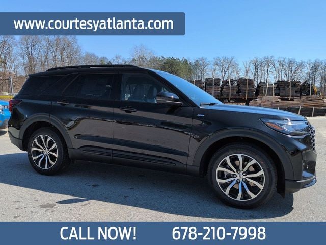 2026 Agate Black Metallic 2026 Ford Explorer ST-Line ST-Line 4D Sport Utility RWD 2.3L EcoBoost I-4 Ford Connectivity Package (one-Time Purchase - 7 Years), 10 Speakers, 3rd row seats: bench, 4-Wheel Disc Brakes, ABS brakes, Air Conditioning, Alloy wheels, AM/FM radio: SiriusXM with 360L, Apple CarPlay/Android Auto, Auto High-beam Headlights, Automatic temperature control, BlueCruise (equipment + 1-Year + 90-Day Plan), BlueCruise Hardware, Brake assist, Bumpers: body-color, Compass, Delay-off headlights, Driver door bin, Driver vanity mirror, Dual front impact airbags, Dual front side impact airbags, Electronic Stability Control, Emergency communication system: 911 Assist, Exterior Parking Camera Rear, Four wheel independent suspension, Front anti-roll bar, Front Bucket Seats, Front Center Armrest, Front dual zone A/C, Front fog lights, Front reading lights, Fully automatic headlights, Garage door transmitter, Heated door mirrors, Heated front seats, Heated steering wheel, Heated Unique Cloth Captain's Chairs, Illuminated entry, Knee airbag, Leather steering wheel, Low tire pressure warning, Navigation System, Occupant sensing airbag, Outside temperature display, Overhead airbag, Overhead console, Panic alarm, Passenger door bin, Passenger vanity mirror, Power door mirrors, Power driver seat, Power Liftgate, Power passenger seat, Power steering, Power windows, Radio: B&O Sound System by Bang and Olufsen, Rear air conditioning, Rear anti-roll bar, Rear reading lights, Rear window defroster, Rear window wiper, Remote keyless entry, Security system, Speed control, Speed-sensing steering, Speed-Sensitive Wipers, Split folding rear seat, Spoiler, Steering wheel mounted audio controls, Tachometer, Telescoping steering wheel, Tilt steering wheel, Traction control, Trip computer, Variably intermittent wipers, and Wheels: 20 Ebony-Painted Machined Aluminum. Price includes: $1,000 - Exp. 12/31/2026 Retail Trade Assistance. Must trade in a vehicle to qualify $1,000 - Exp. 12/31/2026 Dealer Finance Assistance. Must finance through dealer lender to qualify.