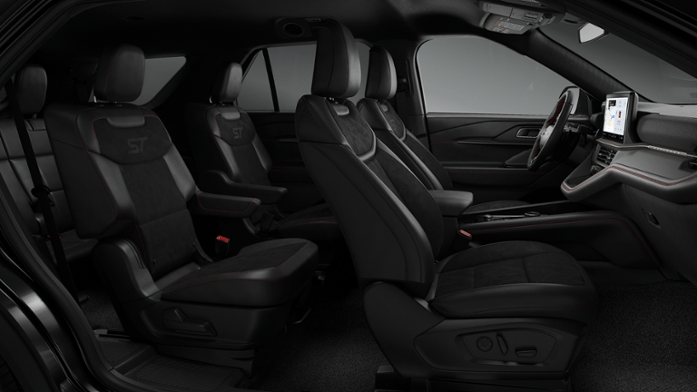 2026 Agate Black Metallic 2026 Ford Explorer ST ST 4D Sport Utility 4WD 3.0L EcoBoost V6 4WD. Ford Connectivity Package (one-Time Purchase - 7 Years), Sun and Sound Package (Multicontour Seats with Front Active Motion, Panoramic Fixed Glass Roof with Power Shade, Radio: B&O Sound System by Bang & Olufsen, and Remote Control Front Windows), 4WD, 10 Speakers, 3rd row seats: bench, 4-Wheel Disc Brakes, ABS brakes, Air Conditioning, Alloy wheels, AM/FM radio: SiriusXM with 360L, Apple CarPlay/Android Auto, Auto High-beam Headlights, Auto-dimming door mirrors, Auto-dimming Rear-View mirror, Automatic temperature control, BlueCruise Equipped (1-Year + 90-Day Plan), Brake assist, Bumpers: body-color, Compass, Delay-off headlights, Driver door bin, Driver vanity mirror, Dual front impact airbags, Dual front side impact airbags, Electronic Stability Control, Emergency communication system: 911 Assist, Exterior Parking Camera Rear, Four wheel independent suspension, Front anti-roll bar, Front Bucket Seats, Front Center Armrest, Front dual zone A/C, Front fog lights, Front reading lights, Fully automatic headlights, Garage door transmitter, Heated door mirrors, Heated front seats, Heated rear seats, Heated steering wheel, Heated/Ventilated Miko Suede Captain's Chairs, Illuminated entry, Knee airbag, Leather steering wheel, Low tire pressure warning, Memory seat, Navigation System, Occupant sensing airbag, Outside temperature display, Overhead airbag, Overhead console, Panic alarm, Passenger door bin, Passenger vanity mirror, Power door mirrors, Power driver seat, Power Liftgate, Power passenger seat, Power steering, Power windows, Radio: B&O Sound System by Bang and Olufsen, Rain sensing wipers, Rear air conditioning, Rear anti-roll bar, Rear reading lights, Rear window defroster, Rear window wiper, Remote keyless entry, Security system, SiriusXM with 360L (3-Year Plan), Speed control, Speed-sensing steering, Speed-Sensitive Wipers, Split folding rear seat, Spoiler, Sport steering wheel, Steering wheel mounted audio controls, Tachometer, Telescoping steering wheel, Tilt steering wheel, Traction control, Trip computer, Turn signal indicator mirrors, Variably intermittent wipers, Ventilated front seats, and Wheels: 21 Magnetite-Painted Aluminum. Price includes: $1,000 - Exp. 12/31/2026 Retail Trade Assistance. Must trade in a vehicle to qualify $1,000 - Exp. 12/31/2026 Dealer Finance Assistance. Must finance through dealer lender to qualify.