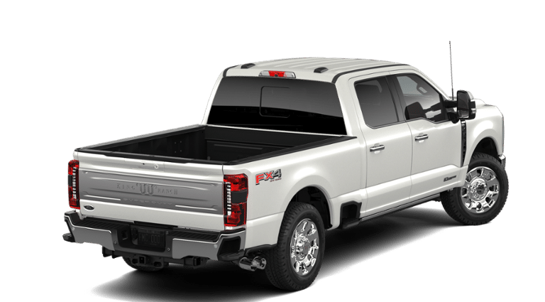 2026 Star White Metallic Tri-Coat 2026 Ford F-250SD King Ranch King Ranch 4D Crew Cab 4WD Power Stroke 6.7L V8 DI 32V OHV Turbodiesel 4WD. Chrome Package, Ford Connectivity Package (1-Year Included), FX4 Off-Road Package (Hill Descent Control, Off-Road Specifically Tuned Shock Absorbers, and Unique FX4 Off-Road Box Decal), GVWR: F-250 >10K Package, Internet access capable: 5G Modem - Ford Connectivity Package, Order Code 700A (Flow-Through Console, Radio: B&O Unleashed Sound System by Bang & Olufsen, SiriusXM with 360L, SYNC 4 with Enhanced Voice Recognition, Unique King Ranch Leather 40/Console/40 Seats, and Wheels: 20 Bright Machined Aluminum), 4WD, 14 Speakers, 4-Wheel Disc Brakes, 410 Amp Dual Alternators, ABS brakes, Adjustable pedals, Air Conditioning, All-Weather Floor Mats, Alloy wheels, AM/FM radio: SiriusXM with 360L, Auto High-beam Headlights, Auto tilt-away steering wheel, Auto-dimming Rear-View mirror, Automatic temperature control, Brake assist, Compass, Delay-off headlights, Driver door bin, Driver vanity mirror, Dual front impact airbags, Dual front side impact airbags, Electronic Stability Control, Emergency communication system: SYNC 4 911 Assist, Front anti-roll bar, Front Bucket Seats, Front Center Armrest, Front dual zone A/C, Front fog lights, Front License Plate Bracket, Front reading lights, Fully automatic headlights, Garage door transmitter, Heads-Up Display, Heated door mirrors, Heated front seats, Heated rear seats, Heated steering wheel, Illuminated entry, Leather steering wheel, Low tire pressure warning, Memory seat, Navigation system: Connected Navigation, Outside temperature display, Overhead airbag, Overhead console, Panic alarm, Passenger door bin, Passenger vanity mirror, Pedal memory, Power door mirrors, Power driver seat, Power passenger seat, Power steering, Power windows, Rain sensing wipers, Rear reading lights, Rear seat center armrest, Rear step bumper, Rear window defroster, Remote keyless entry, SecuriCode Keyless Entry Keypad (driver's Side), Security system, Speed control, Split folding rear seat, Steering wheel memory, Steering wheel mounted A/C controls, Steering wheel mounted audio controls, Tachometer, Telescoping steering wheel, Tilt steering wheel, Tough Bed Spray-in Bedliner, Traction control, Trip computer, Turn signal indicator mirrors, Upfitter Switches (6), Variably intermittent wipers, and Ventilated front seats. $1,000 - Exp. 12/31/2026 Retail Trade Assistance. Must trade in a vehicle to qualify $1,000 - Exp. 12/31/2026 Dealer Finance Assistance. Must finance through dealer lender to qualify.
