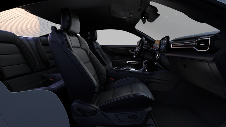 2026 Vapor Blue Metallic 2026 Ford Mustang 2D Coupe RWD 5.0L V8 Ti-VCT Mustang Nite Pony Package (Black Mirror Caps), 1st Row Carpeted Black Floor Mats, 3.55 Limited Slip Rear Axle, 4-Wheel Disc Brakes, ABS brakes, ActiveX Trimmed Bucket Seats, Air Conditioning, Alloy wheels, AM/FM Stereo, Auto High-beam Headlights, Automatic temperature control, Brake assist, Bumpers: body-color, Climate Controlled Heated/Cooled Front Seats, Compass, Delay-off headlights, Driver door bin, Driver vanity mirror, Dual front impact airbags, Dual front side impact airbags, Electronic Stability Control, Emergency communication system: 911 Assist, Exterior Parking Camera Rear, Four wheel independent suspension, Front anti-roll bar, Front Bucket Seats, Front Center Armrest, Front dual zone A/C, Front reading lights, Fully automatic headlights, Illuminated entry, Knee airbag, Leather Shift Knob, Leather steering wheel, Low tire pressure warning, Occupant sensing airbag, Outside temperature display, Overhead airbag, Overhead console, Panic alarm, Passenger door bin, Passenger vanity mirror, Power door mirrors, Power steering, Power windows, Radio data system, Rain sensing wipers, Rear anti-roll bar, Rear Parking Sensors, Rear window defroster, RECARO Leather-Trimmed Sport Seats, Remote keyless entry, Speed control, Speed-sensing steering, Speed-Sensitive Wipers, Split folding rear seat, Sport steering wheel, Steering wheel mounted audio controls, SYNC 4, Tachometer, Telescoping steering wheel, Tilt steering wheel, Traction control, Trip computer, Variably intermittent wipers, Voltmeter, and Wedge Decklid Spoiler.