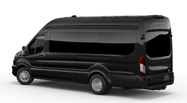 2026 Agate Black Metallic 2026 Ford Transit-350 XLT XLT Passenger Van RWD EcoBoost 3.5L V6 GTDi DOHC 24V Twin Turbocharged Ford Connectivity Package (1-Year Included), Heavy-Duty Trailer Tow Package (Frame Mounted Hitch Receiver), 2 Additional Keys (4 Total), 253-Degree Rear Door Opening, 3.73 Limited-Slip Axle Ratio, 3rd row seats: split-bench, 4-Wheel Disc Brakes, 4th-Row Bench Seat, 5th row bench seat, 8 Speakers, ABS brakes, Air Conditioning, Apple CarPlay/Android Auto, Auto High-beam Headlights, Black High-Intensity Discharge (HID) Headlamps, Brake assist, Cloth Front Bucket Seats, Delay-off headlights, Driver door bin, Driver vanity mirror, Driver's Seat Mounted Armrest, Dual front impact airbags, Dual front side impact airbags, Dual rear wheels, Electronic Stability Control, Emergency communication system: 911 Assist, Extended Length Passenger Running Board, Front anti-roll bar, Front Bucket Seats, Front License Plate Bracket, Front Overhead Shelf, Front reading lights, Front wheel independent suspension, Illuminated entry, Keyless Entry Keypad, Large Center Console, Low tire pressure warning, Midship Extended Range Fuel Tank (31 Gallons), Navigation system: Connected Navigation, Occupant sensing airbag, Overhead airbag, Panic alarm, Passenger door bin, Passenger seat mounted armrest, Passenger vanity mirror, Power door mirrors, Power steering, Power windows, Rain sensing wipers, Rear air conditioning, Rear window defroster, Remote keyless entry, Speed control, Steering wheel mounted audio controls, SYNC 4, Tachometer, Telescoping steering wheel, Tilt steering wheel, Traction control, Trailer Brake Controller, Variably intermittent wipers, and Wheels: 16 Heavy-Duty Silver Steel with Silver Hubcaps.
