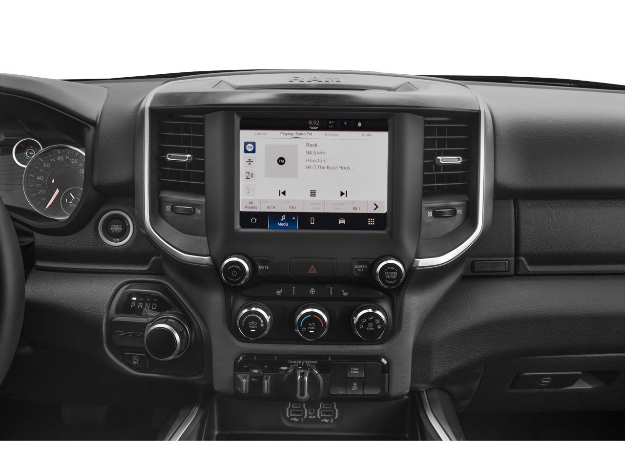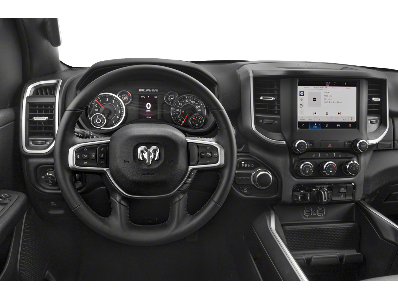 The Big Horn Level B Equipment Group adds even more premium features, including a 400W inverter, 9 amplified speakers with a subwoofer, Uconnect 5 navigation with a 12-inch display, and dual-zone automatic climate control. With 18 city and 22 highway MPG, this Ram 1500 delivers impressive fuel efficiency without sacrificing power.