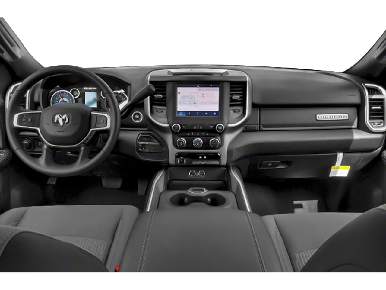 The interior of this Ram 3500 Big Horn is appointed with premium cloth upholstery, offering a comfortable and durable seating experience. The 40/20/40 split bench seat provides ample room for passengers, while the power-adjustable driver's seat ensures a perfect driving position. Thoughtful storage solutions, including front seat back map pockets and an integrated center console, help keep your cabin organized.